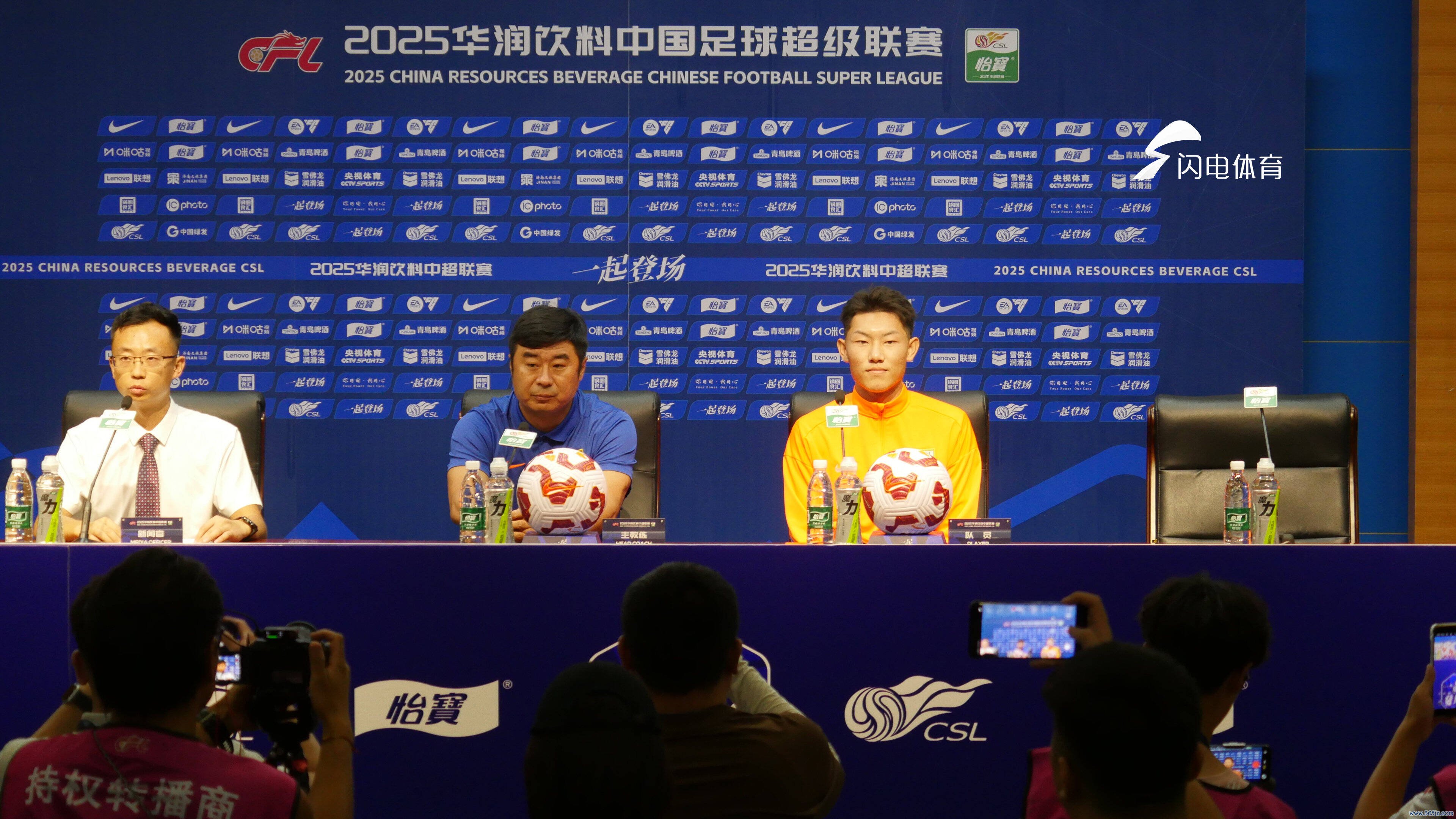 闪电体育8月30日讯今日,在中超职业联赛 第23轮山东泰山主场作战 对阵北京国安的赛前发布会上,山东泰山队指导教练员组组长韩鹏携队员史松宸出席,介绍了球队的准备情况并回应了媒体提问。韩鹏表示,京鲁大战从不缺乏出色 ,王大雷明天肯定会参赛。