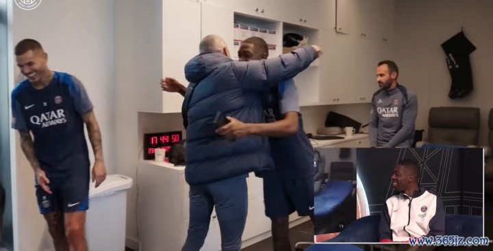 登贝莱:嗯,就像我从一开始就说的,他信任我。他对我好得难以置信,而且就像我说的,他唱那首"奥斯曼金球奖"已经唱了三个月了,每次见到我都唱,所以这很让人开心。他从一开始就给予我的所有信任,我努力在球场上回报。