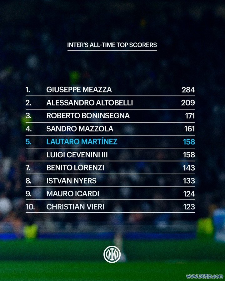 据国米官方统计, 足球快讯足球直播劳塔罗为国米攻入158球, 毕尔巴鄂竞技排名队史射手榜第5位。