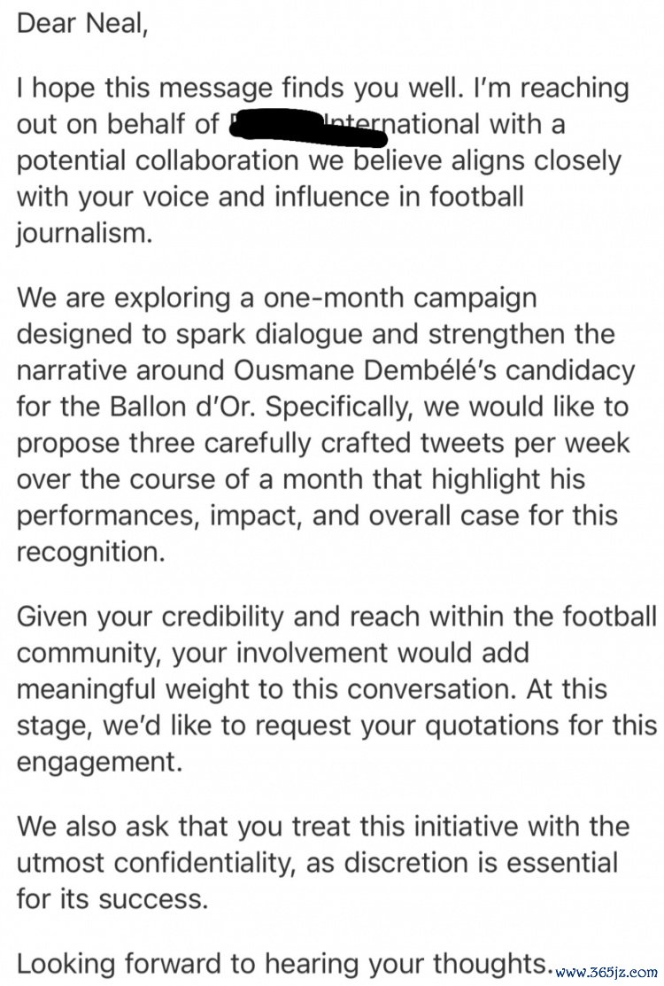 真的假的?博主称公关公司付费让他为登贝莱金球奖造势