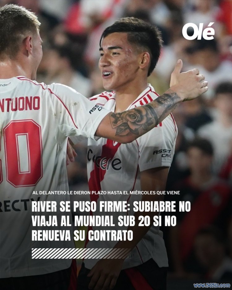 9月19日讯 据阿根廷媒体《奥莱报》报道,河床要求18岁翼锋苏比亚布雷先签下续约合同,否则不会放他参加U20世界杯赛 。