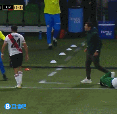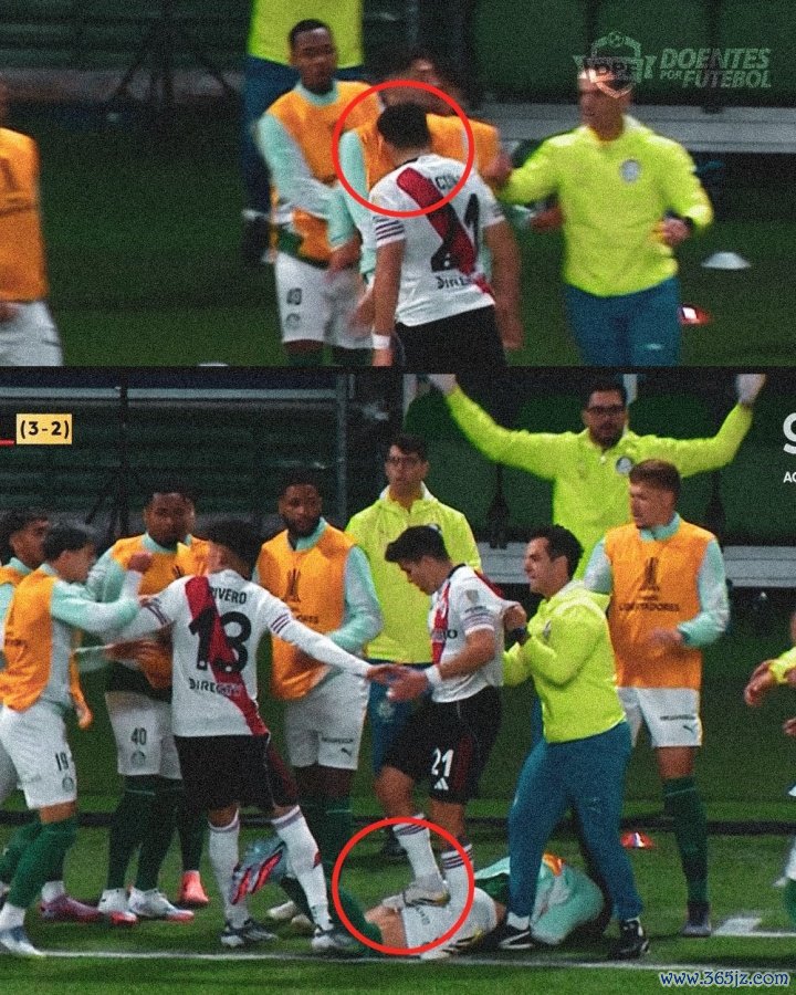 第一黄:帕尔梅拉斯球员拖延时间,阿库尼亚推人染黄,迸发 冲突。