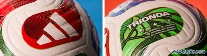 球面图案的设计元素进一步彰显各个主办国特色:星形图案代表美国、枫叶代表加拿大、雄鹰代表墨西哥。这些图案不仅以醒目图形呈现在拼片上,也以浅压花形式融入哑光球面,近看时更显细腻考究质感。