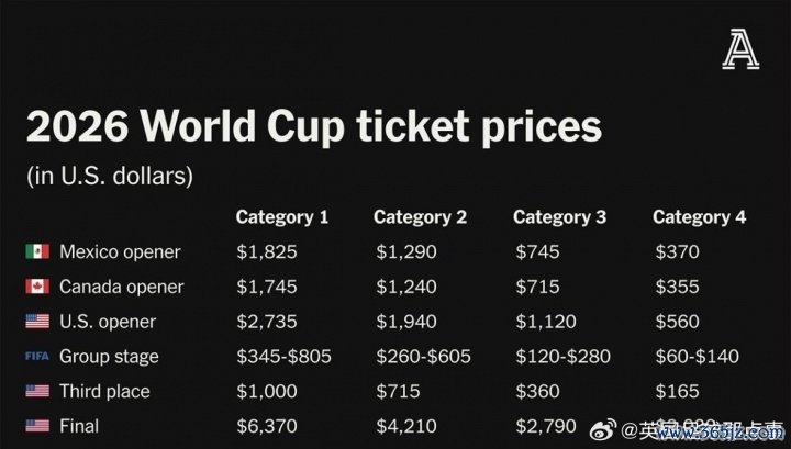 TA公布2026世界杯赛 票价,不少球迷吐槽太贵了.....