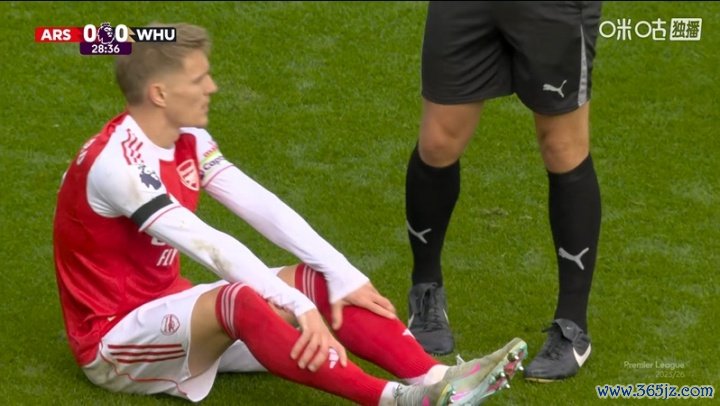10月04日讯 英超第7轮,阿森纳vs西汉姆联。赛事 第30分钟,厄德高膝盖负伤 无法坚守 ,畅游运动天地足球直播被苏维门迪替换下场。