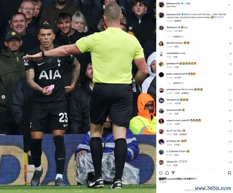 在热刺2-1击败利兹联的赛事 中, 足球快讯波罗在准备开底线球时被一个粉色电子烟击中, 毕尔巴鄂竞技足球直播他捡起后假装吸食,畅游运动天地逗乐了围观的主队球迷。